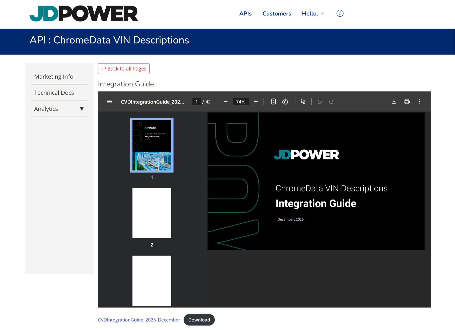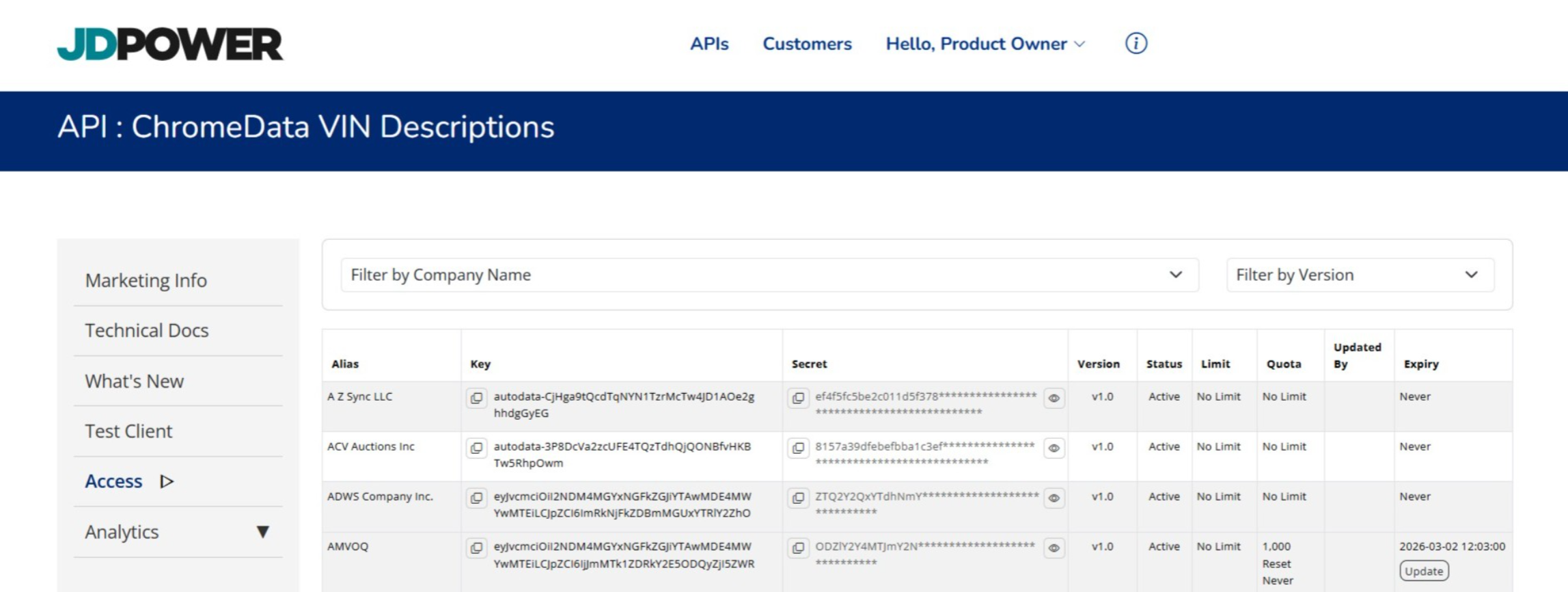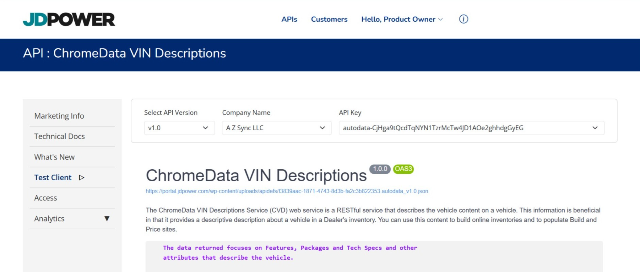 - This will take you to the Customer API Portal homepage https://portal.jdpower.com/