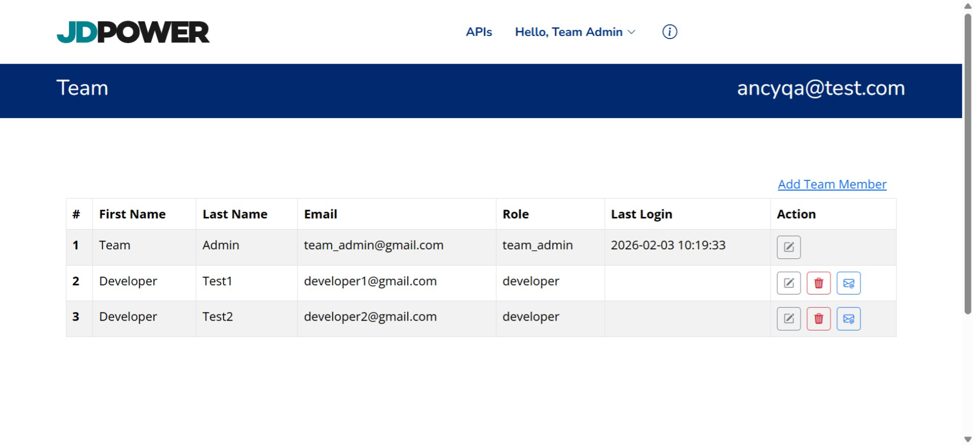 - If you wish to edit or delete a team member, there are icons to perform either task.
