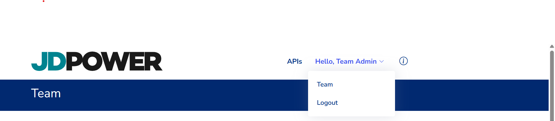- Select the dropdown for your Hello [Customer Name] at the top of the Customer API Portal page and choose Team.